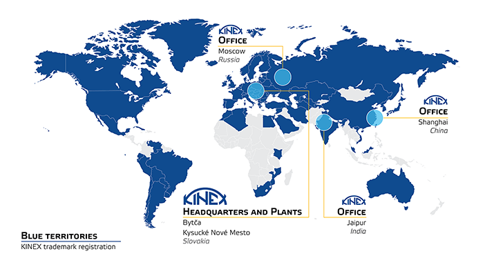 S tak bohatými skúsenosťami patrí spoločnosť KINEX BEARINGS medzi významných dodávateľov valivých ložísk pre rôzne segmenty priemyslu na celom svete. Jej úspech je založený na špičkovej kvalite výrobkov a výrobného procesu, veľkej inovačnej sile a schopnosti rýchlo reagovať na požiadavky zákazníkov. Spoločnosť je súčasťou globálnej priemyselnej skupiny CK Birla Group a v súčasnosti dodáva svoje produkty do viac ako 80 krajín sveta. Je na prvom mieste medzi dodávateľmi špeciálnych ložísk pre textilný priemysel a zároveň európskym lídrom vo výrobe valčekových ložísk pre koľajové vozidlá.