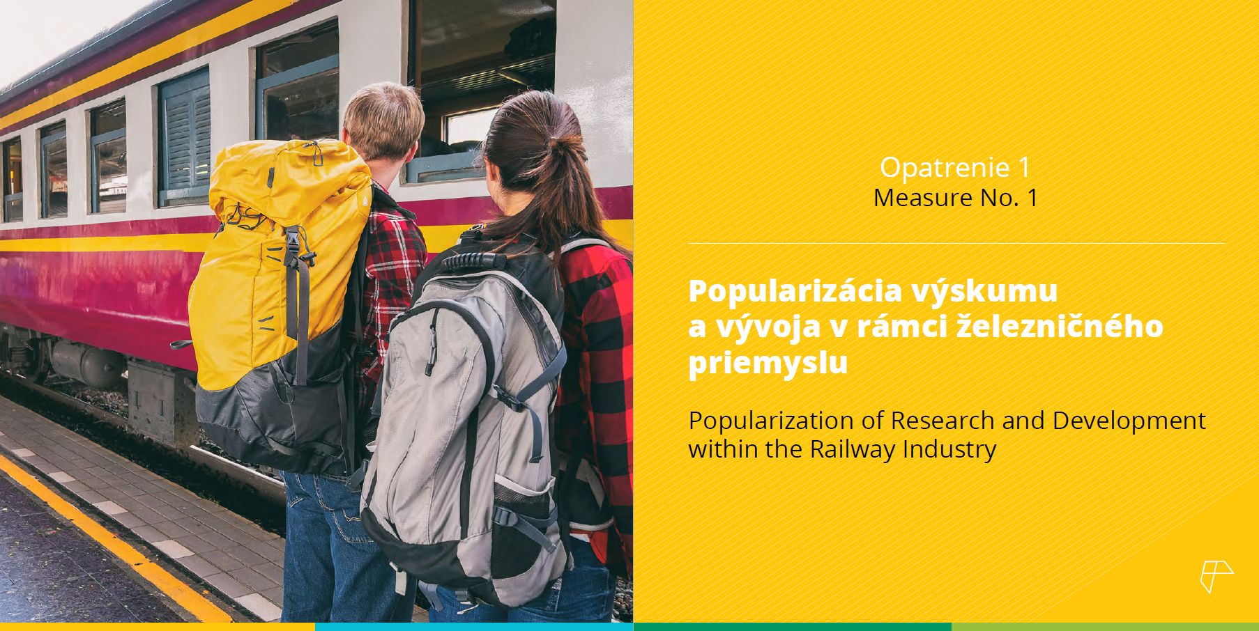 - Informačné aktivity prezentujúce oblasti železničného priemyslu, ktoré majú významný rozvojový potenciál, s cieľom podporiť tvorbu potrebných inovatívnych produktov a služieb v rámci SR